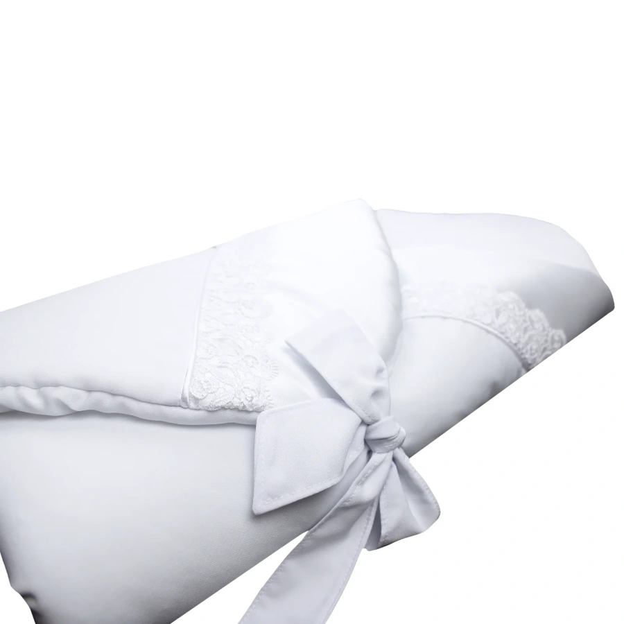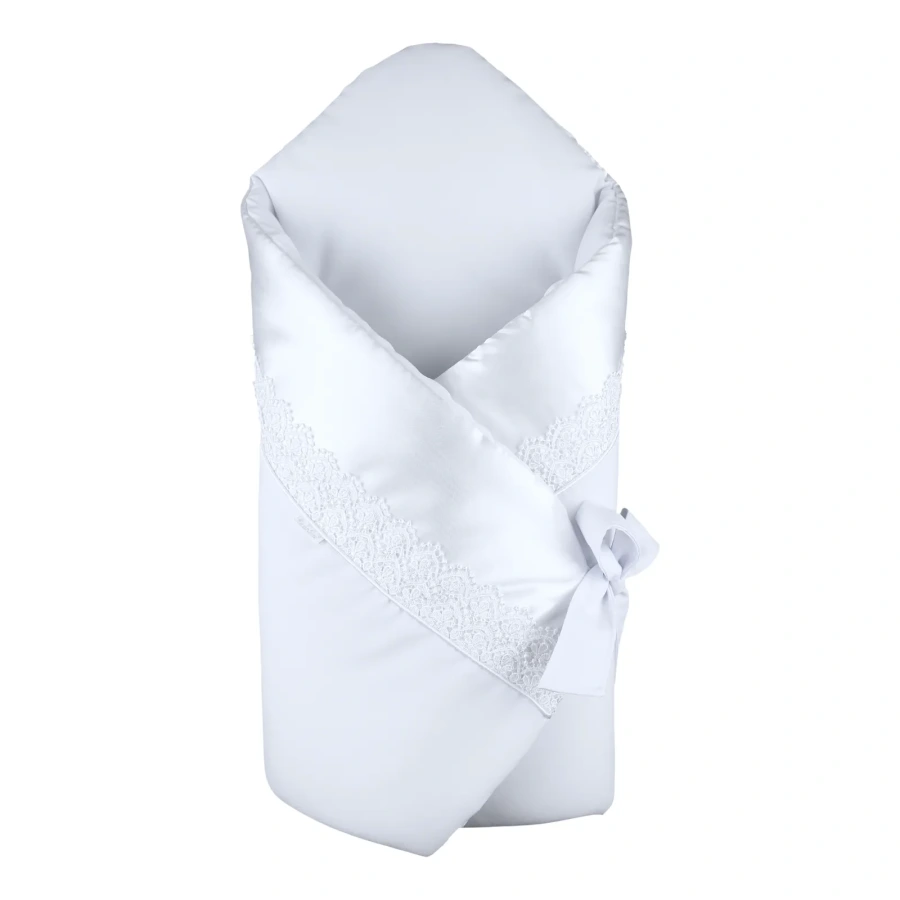Saténová bordúra po okrajoch jej dodáva elegantný vzhľad, vďaka ktorému je ideálna na slávnostné príležitosti aj každodenné používanie. Zavinovačka má vyberateľnú výstuž a je vyplnená antialergickým rúnom, ktoré zabezpečuje príjemnú mäkkosť. Uväzovanie pomocou dvoch bočných šnúrok a ozdobnej vonkajšej mašle umožňuje jednoduché prispôsobenie. Vnútorné viazanie navyše zaisťuje, že sa vaše bábätko nevykope zo zavinovačky a zostane v teple a pohodlí.