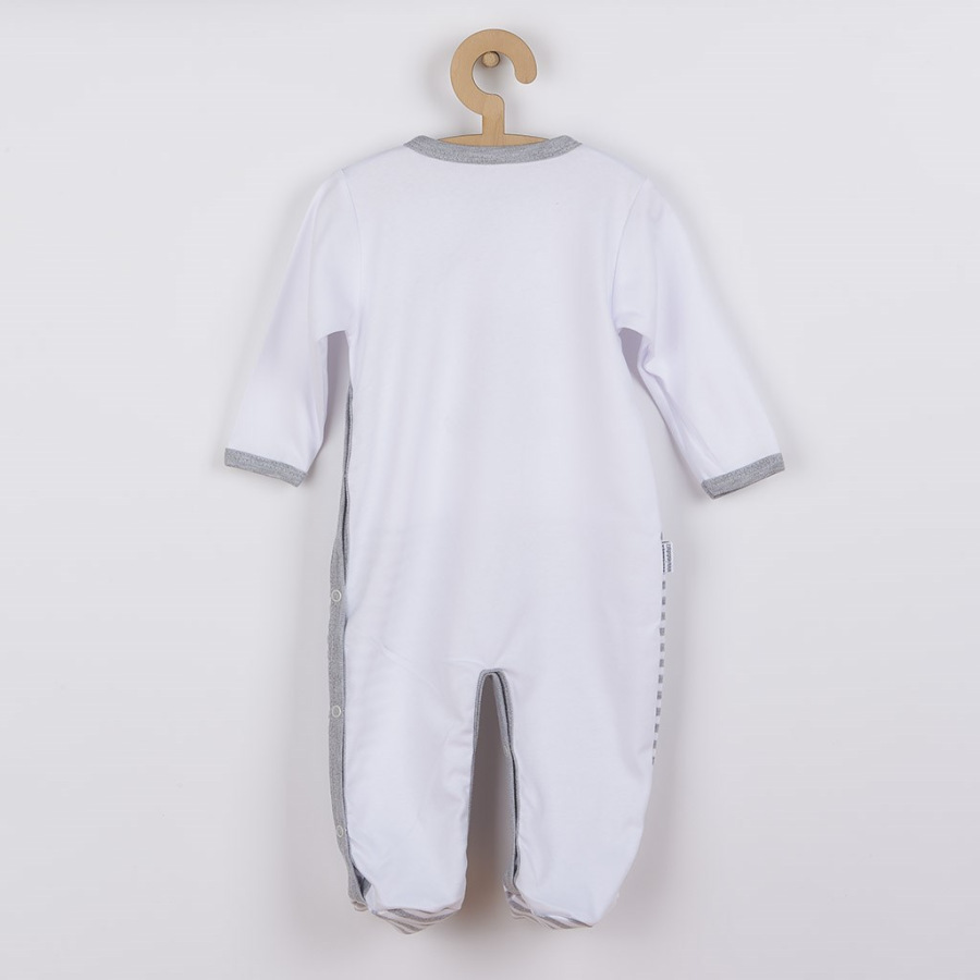Dojčenský overal, značka NEW BABY, veľkosť 80, zloženie 100% bavlna. Overal má zapínanie po celej dĺžke a medzi nožičkami na cvočky.