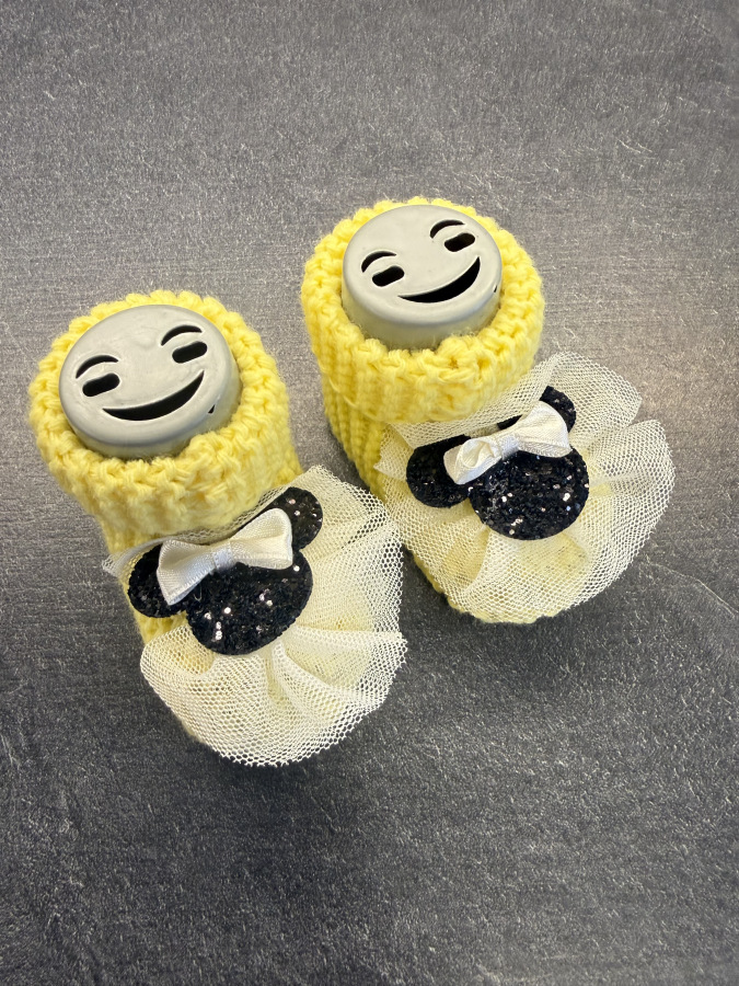 pletené papučky, farba žltá, vnútorná dĺžka chodidla 8,5 - 9 cm