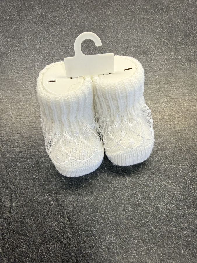 Dievčenské kojenecké ponožky s čipkou, veľkosť na 0-3 mesiace, farba biela.