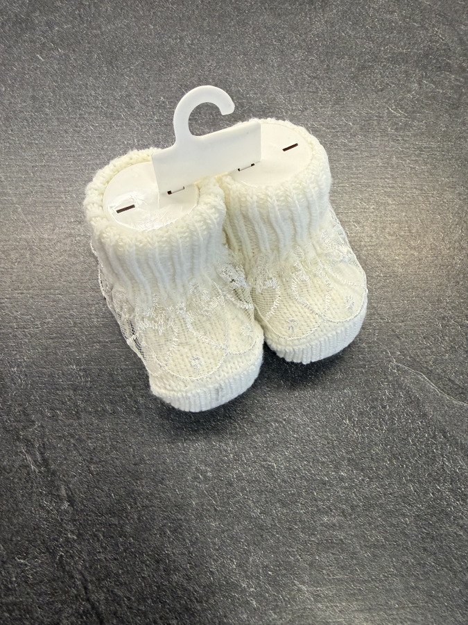 Dievčenské kojenecké ponožky s čipkou, veľkosť na 0-3 mesiace, farba smotanová.