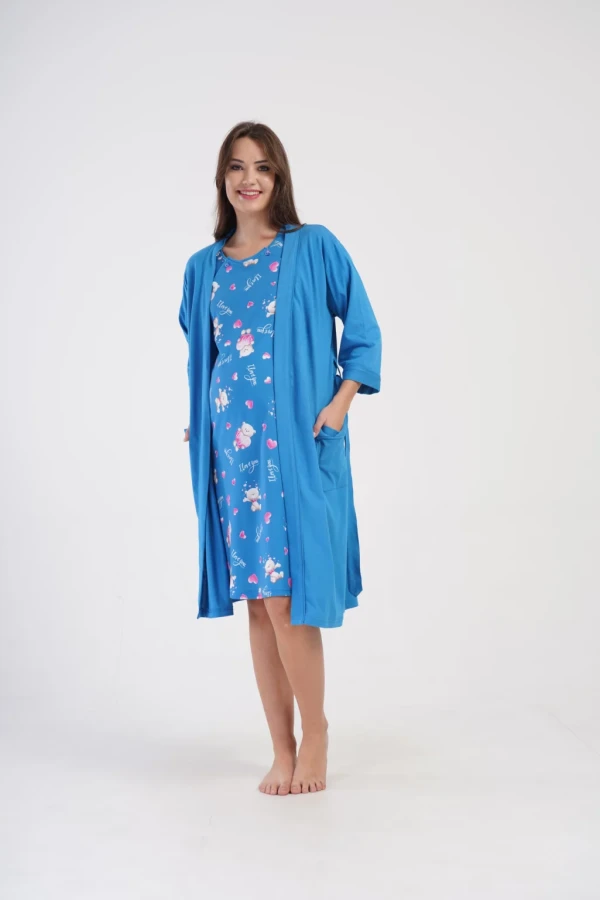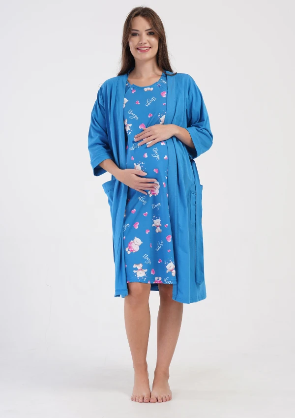Tehotenská nočná košeľa s krátkym rukávom so županom.